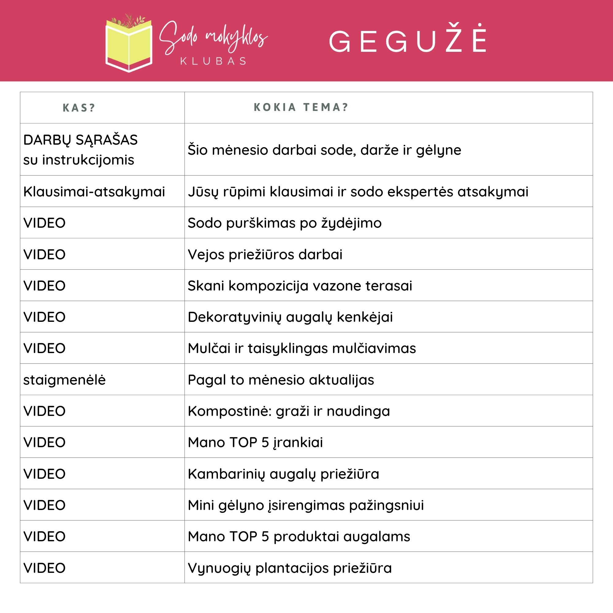 • Išsamios video pamokos apie to mėnesio aktualiausius darbus – 1-2 k. / mėn.