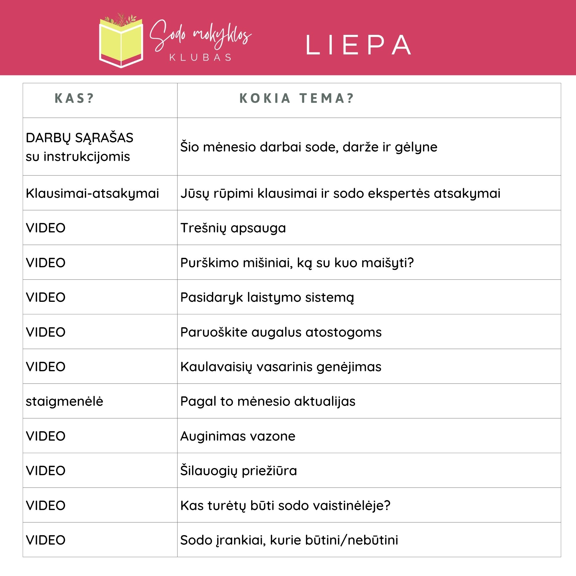 • Mėnesio darbų sąrašas (sode, darže, gėlyne) – 1 k./mėn.